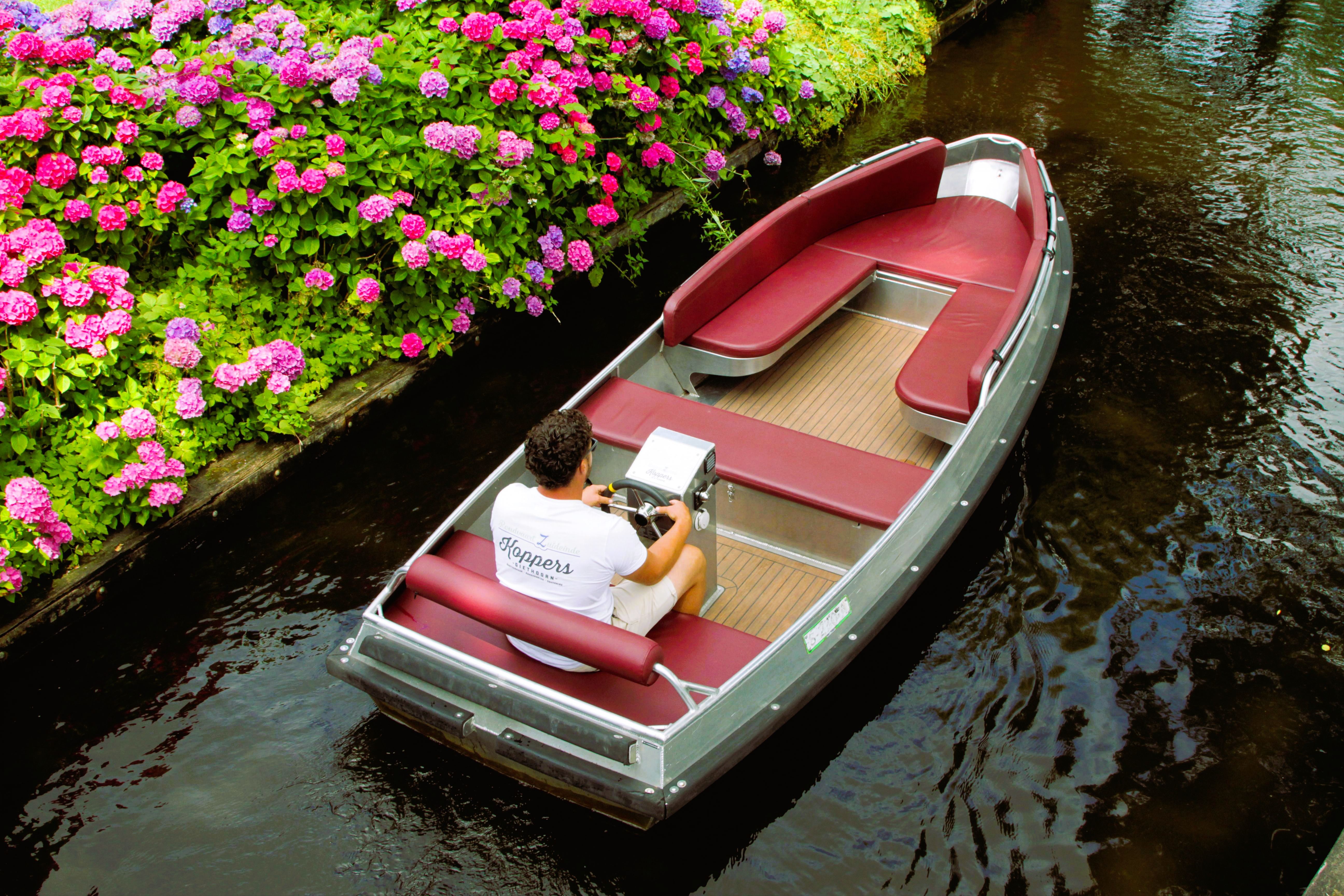 Vergeleken de fluisterboot en de consoleboot is de Electrosloep groter van voormaat. Daarnaast is de Electrosloep ook luxer vanwege de kussensen het stuurwiel in de boot. De Electrosloep is de beste keuze wanneer u zo comfortabel mogelijk door Giethoorn wil varen!